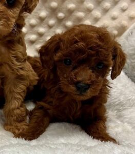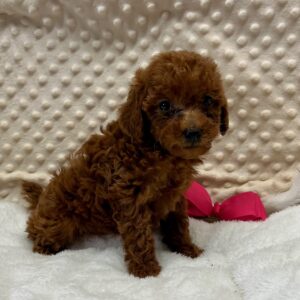 CKC Dark Red Toy Poodle female born 9/4’25. She is the smallest in the litter. I usually release them at 8 to 9 wks.