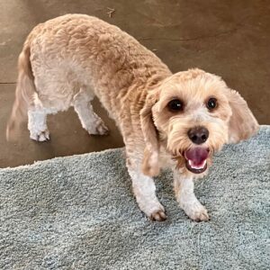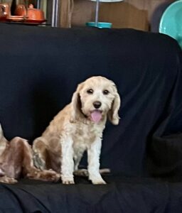 CKC registration form, vaccinations, house trained, loves to sleep with someone, rides well, gets along with other dogs, and cats. There are so many good things to say about Riley and his good manners. He was with an older couple for two months and health issues created a circumstance to where it is best that I take him back. Nothing against him. He is just a big puppy who prefers snuggling, sitting close, and being touched. The only thing he enjoys more is chasing a ball and does retrieve it. I do not believe he has been in a kennel since he left me, but I know he was quiet in it here. I will let his facial hair, ears and tail grow out longer from this point on. He is easy to trim and bath. He does prefer women but is not afraid of men. His weight is 14 lbs., and about 13 inches at the shoulders. He is a very nice size. I think he is precious and so did they.